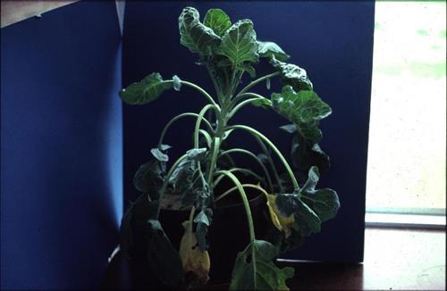 Molybdenum deficiency on brussels sprouts Low pH-values of soils enhance molybdenum deficiency.